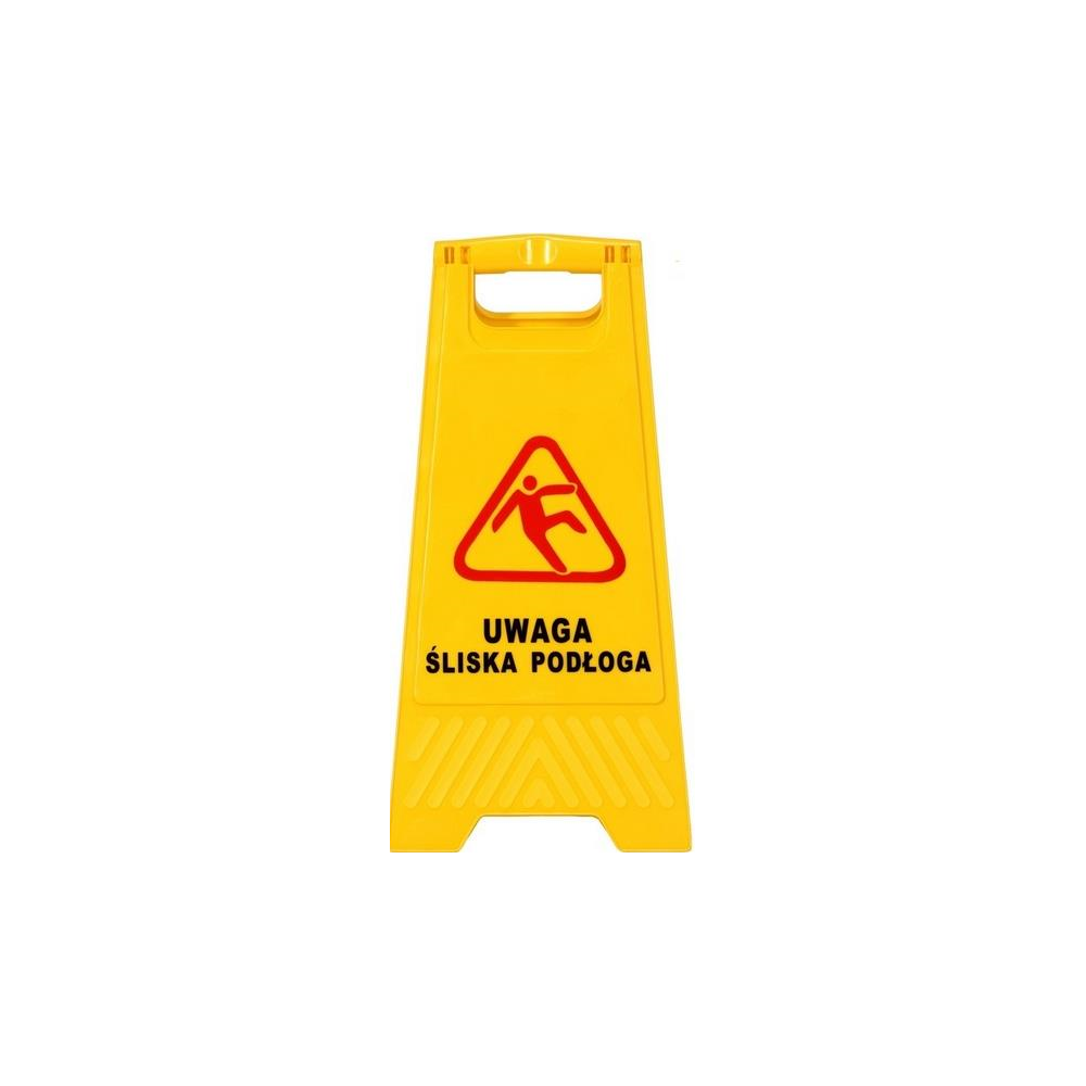 Tablica ostrzegawcza "Uwaga śizka podloga". Stabilna konstrukcja, wys. 59cm.