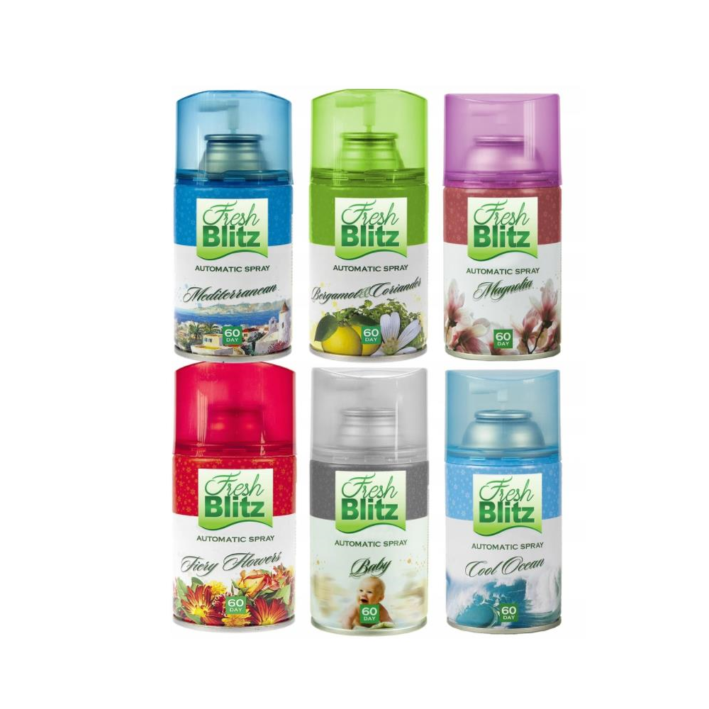 Wysokiej jakości odświeżacz powietrza z systemem 3 w 1- odświeża, neutralizuje, nadaje przyjemny zapach. Zapachy: Kaszmir, Magnolia, Morski, Dziecięcy Pokój, Bergamotka, Diamentowy, Śródziemnomorski, Czerwone Kwiaty, Paczuli, Perfumowany, Lawenda. 260ML.